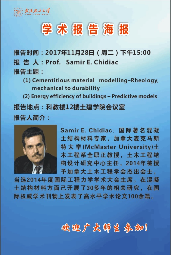 加拿大McMaster大学Samier E.Chidiac 教授将来我院做学术报告